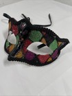 SHIMMERING Glitter Harlequin Black Green Red Diamond Pattern Mardi Gras Eye Mask