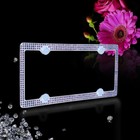 Super Bling 3 Rows Grey REAL CRYSTAL Embedded Chrome Metal License Plate Frame