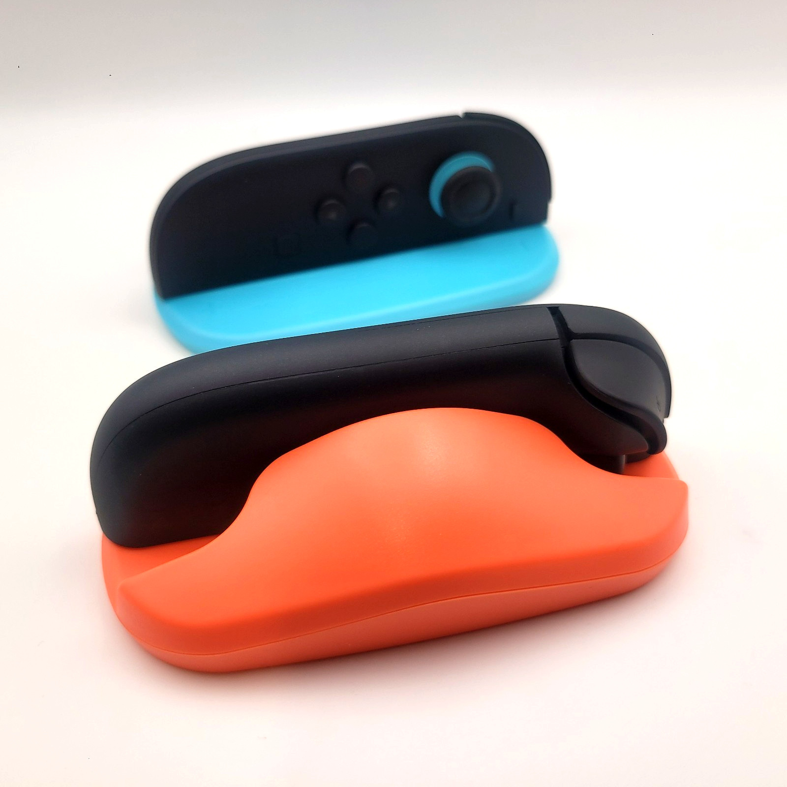 2 Mouse Grip Stands compatible with Nintendo Switch Joycon controllers. One red and one blue stand is included. Enjoy the ergonomic feel of the Switch 2 compatible mouse grip stands for the Joycon controllers. This comes with one unit for each controller. Joycon controllers not included