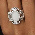 Silver Tone Filigree Oval Stone Ring Size 9 Boho Statement Jewelry