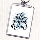 Blue White Follow Your Dreams Inspirational Quote Bag Tag Keychain Keyring