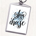 Blue White Say Cheese Inspirational Quote Bag Tag Keychain Keyring