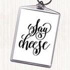 White Black Say Cheese Quote Bag Tag Keychain Keyring