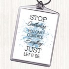 Blue White Stop Overthinking Inspirational Quote Bag Tag Keychain Keyring