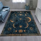 Mystical Moon Rug, Crescent Star Carpet, Dark Blue Gold Celestial Decor, Gothic