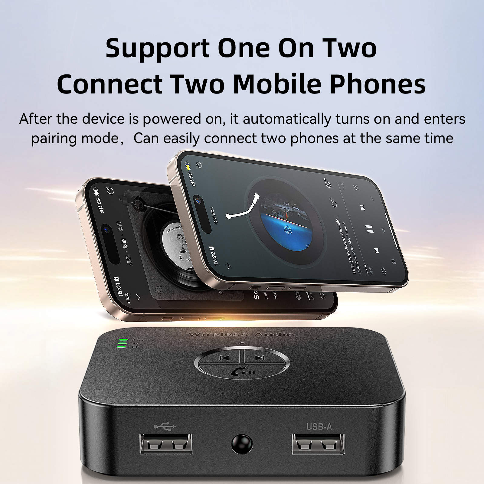 Connect Multiple Devices: It pairs with smartphones, PCs, tablets and supports 2 connections at the same time. (Note: You need to pause the audio of the first step phone before playing the audio of the second part) Connect 2 old speakers via AUX, RCA to synchronize your music at home, it also supports USB drive playback, our device can quickly convert your speakers to Bluetooth speakers to bring you a consistent audio experience