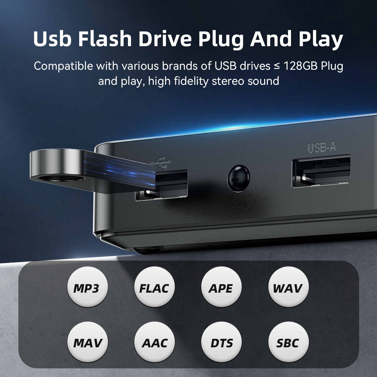 USB disk format: MP3/FLAC/WAV/WMA etc