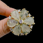Classy Gold Plated Green Prehnite Brass Finger Rings Adjustable Stone Jewelry