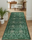 Lunasun Boho Green Long Hallway Runner Rug 2x6 Washable, Farmhouse Floral Bot...