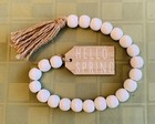 HELLO SPRING Wood Bead Garland with Tag Sign Tier Tray Farmhouse Tassel NEW