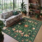 Green 5x7 Floral Area Rugs, Non-Slip Washable Boho Rugs for Living Room, Stain R