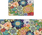 Boho Floral Kitchen Rugs Mats for Floor 2 Piece Memory Foam Padded Kitchen Ma...
