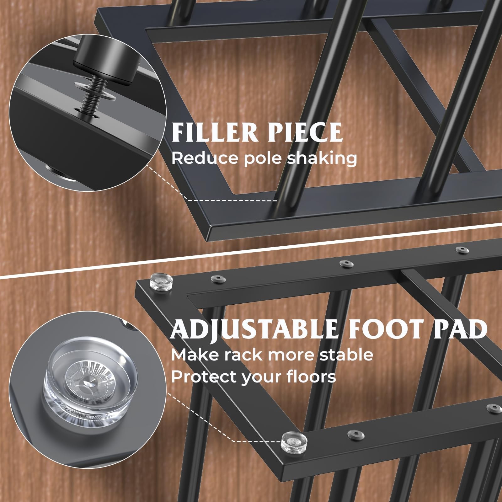 - STABLE BASE DESIGN - Our boot storage rack features a filler piece between the base and support poles, enhancing stability and minimizing wobbling. It also has two extra support rods and 6 silicone foot pads on the base, ensuring that the boot rack sits firmly on the ground while also protecting your floors from scratches or damage. Super amazing!