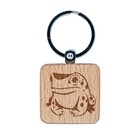 Frog Toad Sitting and Staring Engraved Wood Square Keychain Tag Charm