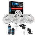 Front & Rear Brake Pad Rotor Kit Premium G Coated Slotted X Drilled Ceramic