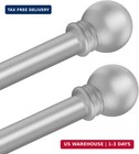 2 Pack Silver Curtain Rods for Bedroom with Brackets,5/8 Inch Diameter Small Win