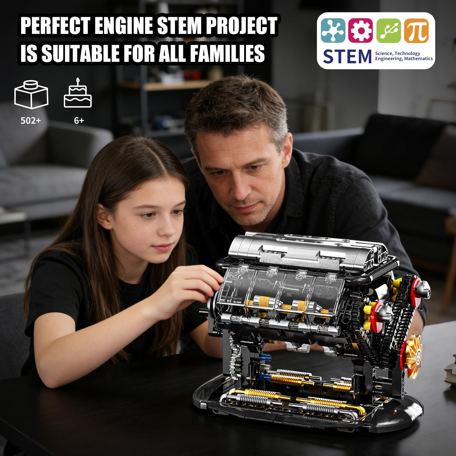 [Perfect Gift for Boys Girls 6+]- This V8 engine model designed for people who like car and mechanical engineering, is suitable for adults or boys girls 6+. Its playability and collectibility make it the perfect gift for any special occasion, such as Christmas, Birthdays, Children's Day, STEM educational events, etc.