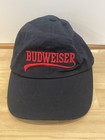 Vintage Budweiser Black w/ Red Embroidered Logo Strapback Hat Baseball Cap
