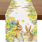 Easter Table Runner Bunny Rabbits Yellow Dahlia Floral Runner for Table Kitchen