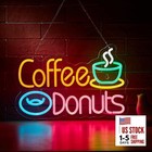 Coffee and Donuts Neon Sign for Wall Décor Orange+Yellow+Green+Blue+Pink