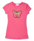 Girls Top Short Sleeve V Neck - Sequin Butterfly