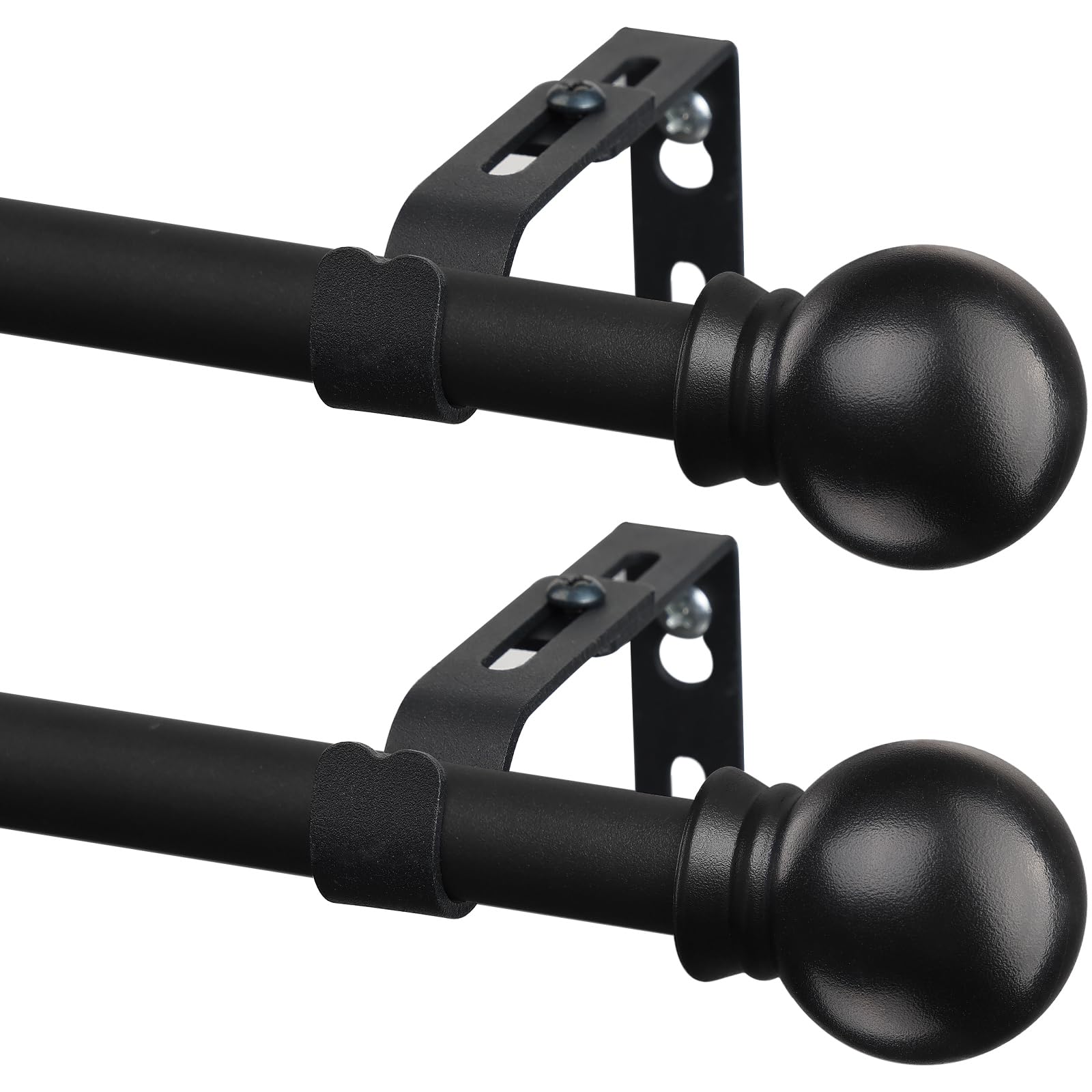 CALCHELE 2 Pack Black Curtain Rods for Windows 28 to 48 inch, 5/8 inch Small Cafe Window Curtain Rods, Short Drapery Rod for Bedroom Kitchen (Size:30-50 Inch, Matte Black)