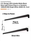 4 Ft. Garage LED Linkable Matte Black Strip Light Fixture Plug-In Hardwire 1800
