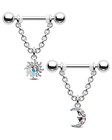 CM Crareesi Mania Bat Wings Nipple Rings - 316L Surgical Steel Chain Piercing...