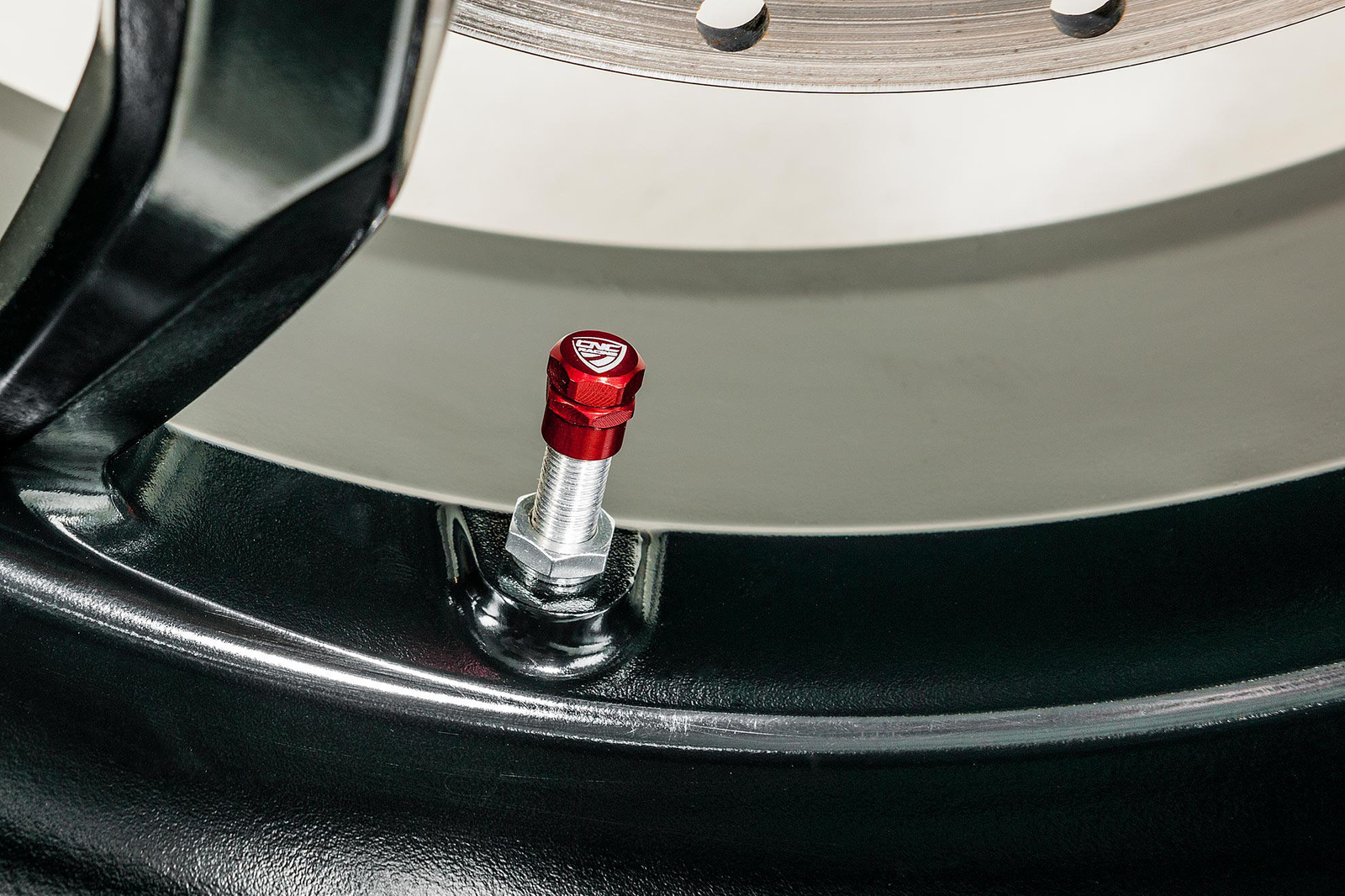 Pair of black aluminum CNC Racing motorcycle wheel valve caps