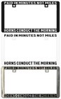 PAID IN MINUTES NOT MILES HORNS CONDUCT THE MORNING. License Plate Frame