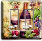 BURGUNDY RED WINE GLASS BOTTLE GRAPES 2 GFI LIGHT SWITCH PLATE KITCHEN ART DECOR