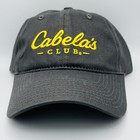 Cabelas Club Hat Cap Spell Out Script Logo Hunting Fishing Baseball Gray Nice