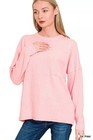 Trendsi Ribbed Hacci Sweater Women's Casual Top w/ Pocket Soft Knit