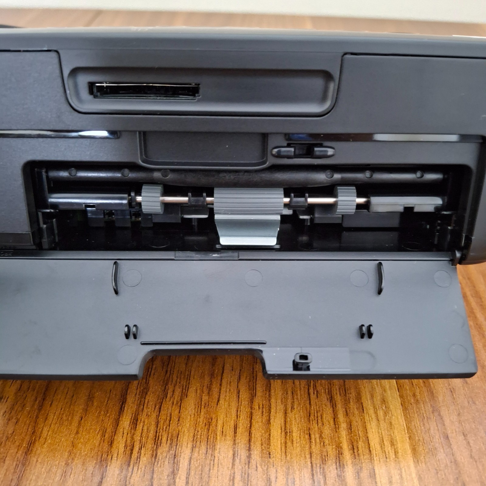 This listing is for the printer only. Power adapter and paper tray are NOT included. You will, however, receive the original box, disk, paperwork and a used ink cartridge which is in the printer as shown in photos.