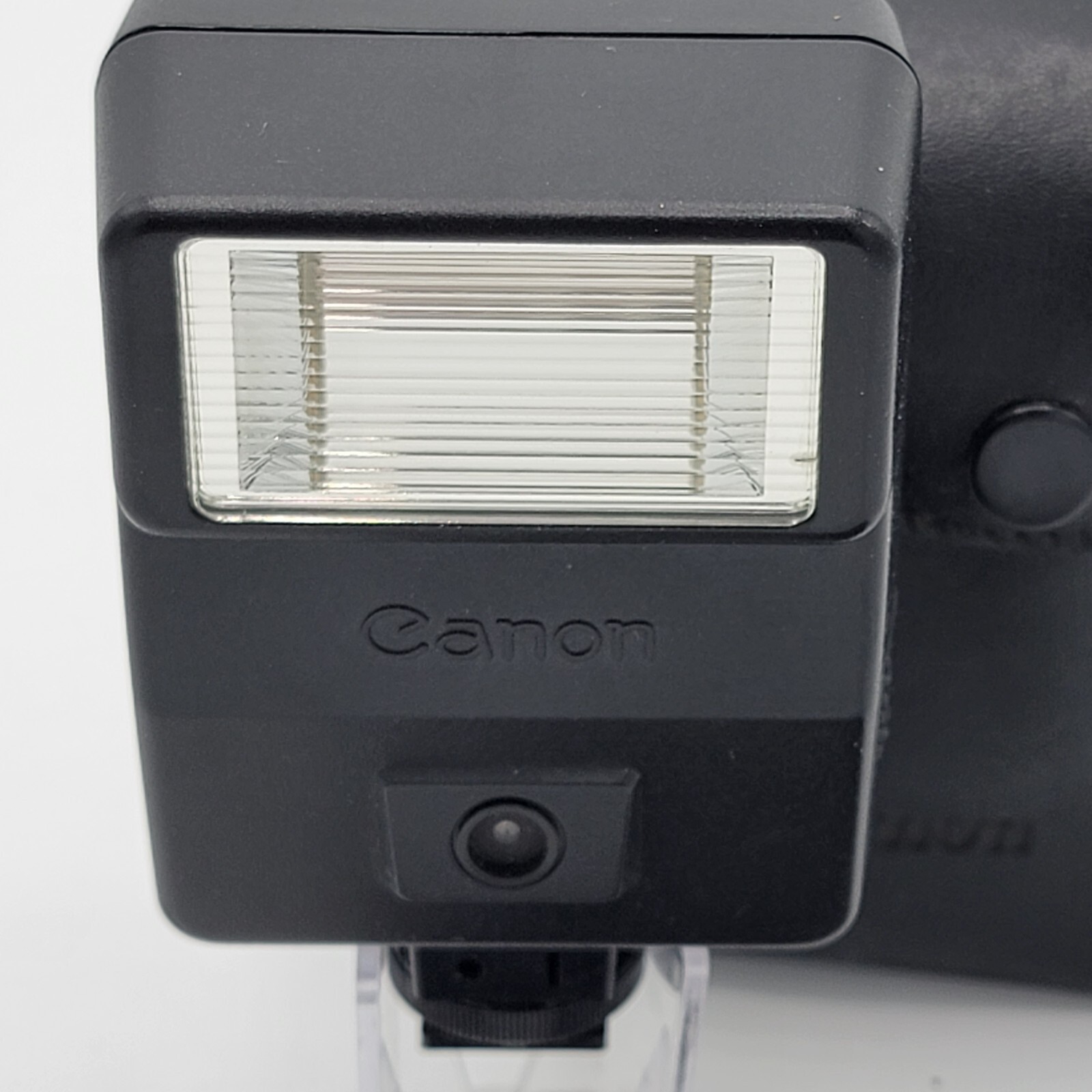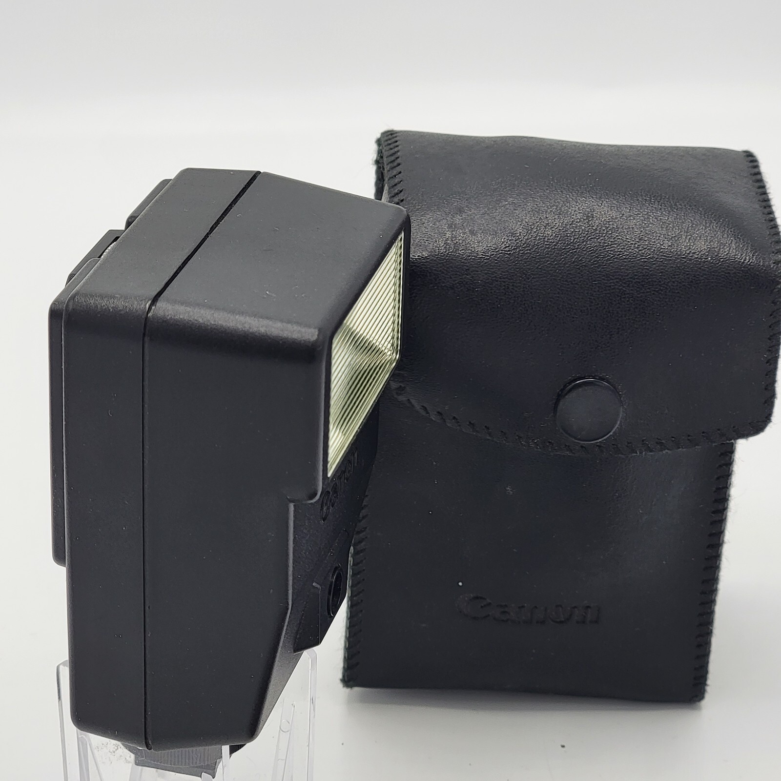 This Canon Speedlite 155A Shoe Mount Auto Flash comes with a case and manual. While it is not functioning, it can still be used for parts. Specifically made for Canon cameras, this strobe light has a hot shoe mount interface and built-in diffuser, allowing for TTL flash control. The model is compatible with SLR and film cameras, making it a versatile accessory for any photographer. It was manufactured in Japan and is being sold as-is. Some corrosion on battery contact