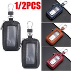 1/2Pcs Car Key Holder Cover Key Chain Bag Genuine Leather Remote Fob Zipper Case
