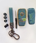 Mercedes Benz Leather Keychain w/ Fob Cover Case Protector & Valve Caps