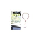 4PCS Rosary for Car, Pink Personalized Car Rosary for Rearview Mirror, Cross