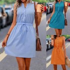Casual Woven Button Lace Up Waist Solid Color Sleeveless Dress Solid Button Draw