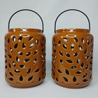 Ceramic Perforated Lantern Candle Holder 2Pc Set Fall Autumn Core Seasonal Decor