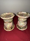 Decorative ceramic stacked planter or Candle holder with floral pattern.