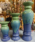 Ceramic Pillar Candle Holder 3 Piece Set, Drip Glaze Blue with Green