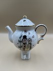 Porcelain Teapot Shaped Night Light White Burgundy Floral Gold Trim Works