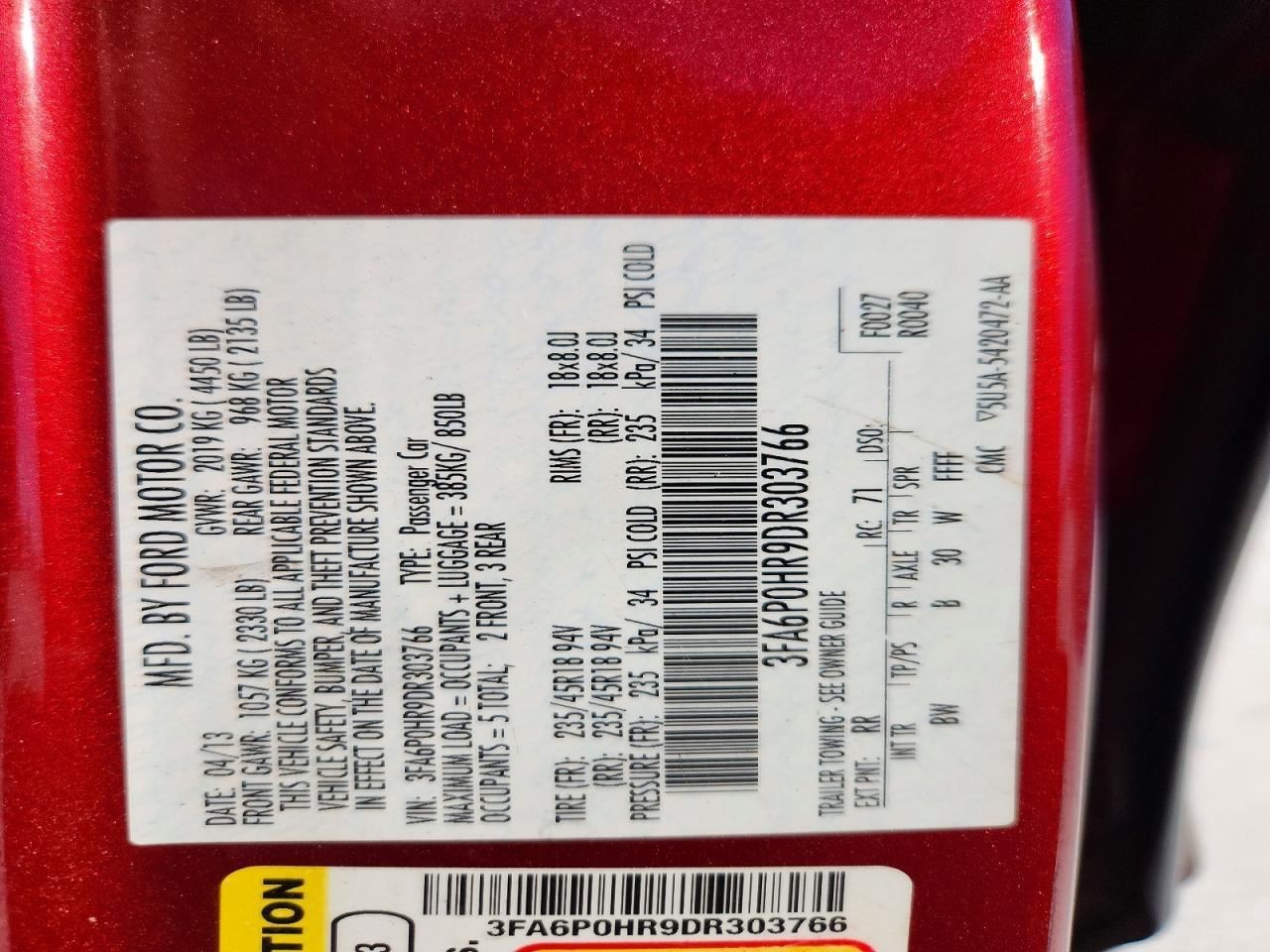 FUSION 13-15 Multifunction; (LH dash), ID DG9T-15604-CB thru CN