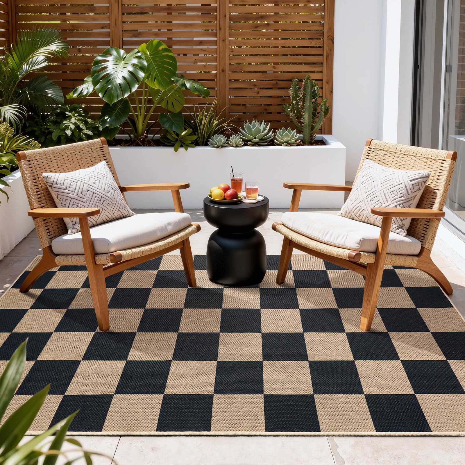 Indoor Outdoor Rug: Checkered 3'x5' rug is suitable for entrance, hallway, porch, outdoor patio, kitchen, camping, living room, bedroom, dining room, laundry room, RV, front door etc. The modern farmhouse outdoor rugs integrates modernity and vitality with the warmth and rustic simplicity of traditional styles, making it a versatile choice for any room.