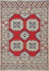 Geometric Red Kazak Oriental Rug 3x4 Handmade Wool Pakistani Accent Carpet