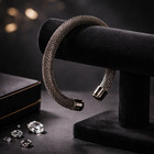 Chunky Mesh Cuff Bracelet | Gunmetal Tone Woven Wire Open Bangle | Modernist Sta