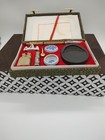 Chinese Calligraphy Set Brushes Ink Stick Stone Rest Porcelain Dishes Box