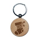 Christmas Stocking Holly Engraved Wood Round Keychain Tag Charm