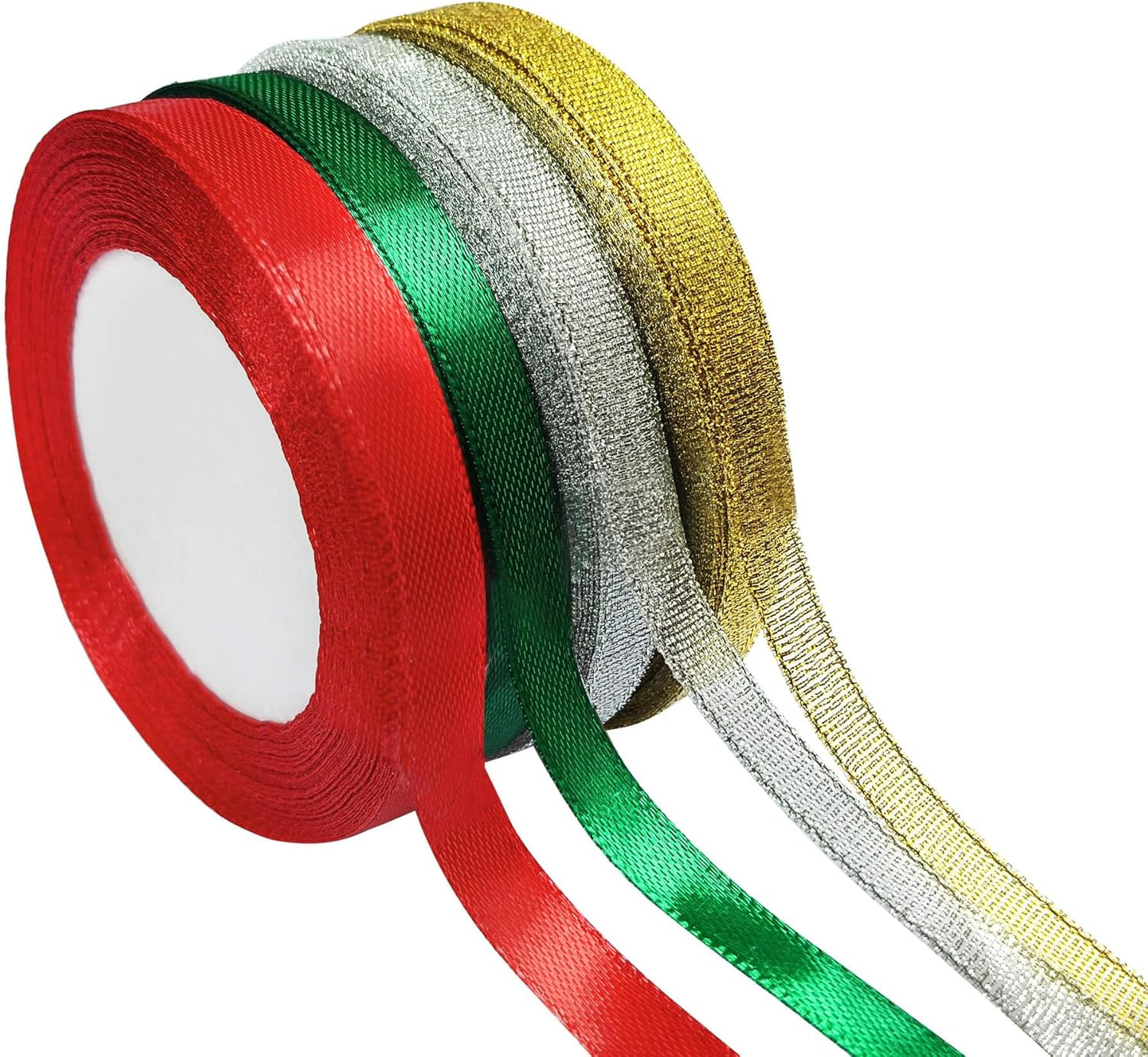 Complete Festive Ribbon Collection: This value pack includes 4 premium rolls in the most popular Christmas colors: Classic Red, Pine Green, Shimmering Gold, and Sparkling Silver - everything you need for coordinated holiday decorating!